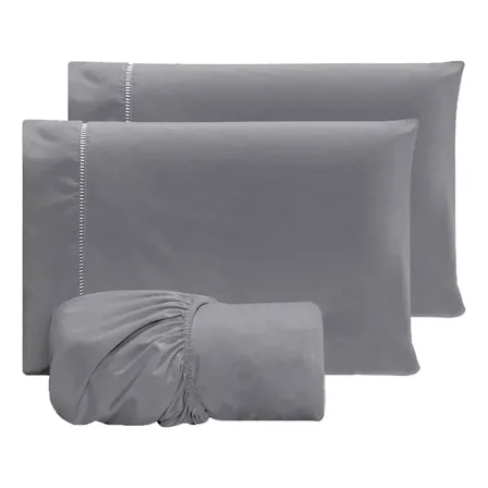 Jogo Lençol Casal 3pç 400 Fios Hipercal Conforto Macio Cor Cinza Desenho Do Tecido Liso