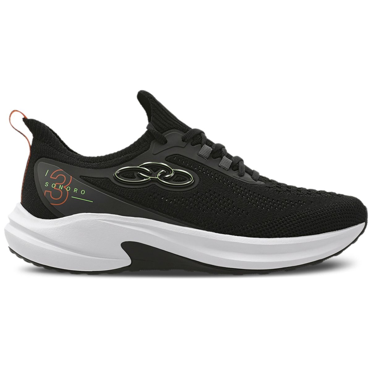 Ideal para quem busca mais leveza nos treinos, o O... Maislympikus Sonoro 3 ganha sua terceira edição. O seu solado possui tecnologia Eleva+, que proporciona leveza, maciez e flexibilidade nas passadas. Conta também com a tecnologia de borracha antiderrapante Gripper, que garante maior durabilidade e alta resistência. Já o cabedal é feito em tecido knit bicolor com tecnologia Hypersox, com estrutura anatômica similar ao de uma meia, oferecendo um caimento confortável e macio, além de flexibilidade e leveza. Possui ainda atacador composto por tecido poliéster texturizado e forro em poliéster com espuma, para maior conforto ao caminhar. O puxador traseiro em fita bicolor auxilia no calce e a palmilha plana é composta por tecido poliéster e EVA, com aplicação gráfica. Menos