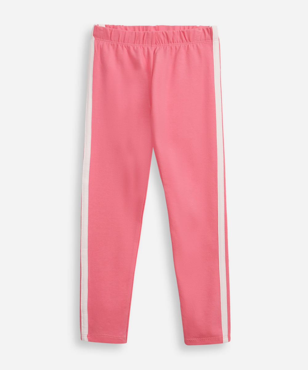 calça legging infantil de algodão com listra rosa
