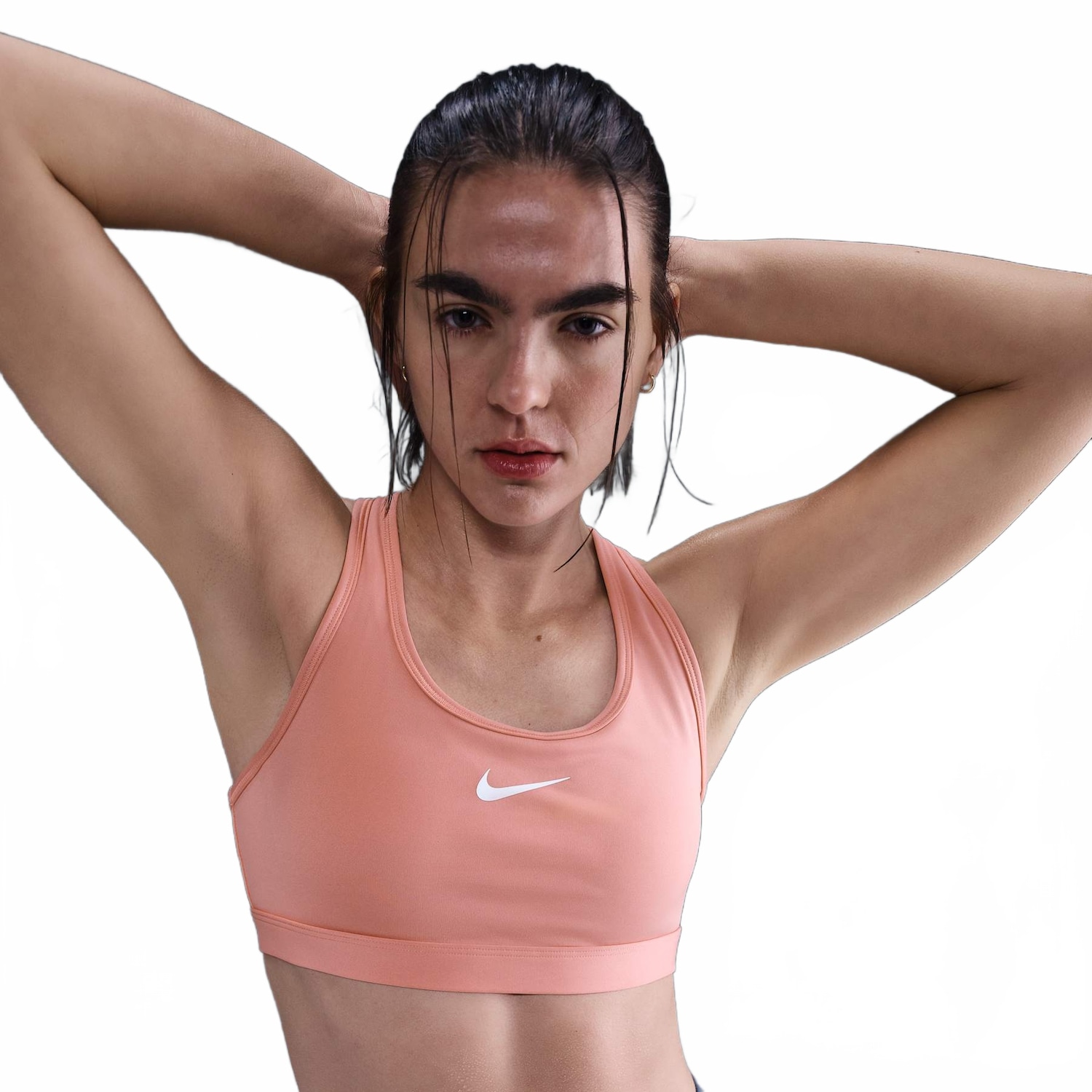 Você está em movimento. O seu bojo não deve faz... Maiser o mesmo. Os bojos costurados deste top Swoosh permanecem no lugar para que você possa trabalhar duro sem se preocupar com eles se deslocando ou dobrando. Ótimo para treinos e aulas de dança, o suporte médio oferece uma fixação confortável que ajuda a manter tudo no lugar. Além disso, o material adaptável que absorve o suor recupera rapidamente sua forma para que você fique confortável ao longo do seu treino.Ajuste e Tecido AdaptáveisQuando você está em movimento, o tecido leve e adaptável do top parece uma segunda pele para um conforto e suporte superior. Quando é hora de descansar, ele se recupera rapidamente e fornece firmeza e formato sutil. As fibras superelásticas facilitam a experiência de vestir e tirar, para que você não precise se curvar para trás para tirar o top.Permaneça SecaTecnologia Nike Dri-FIT absorve o suor da sua pele para evaporação mais rápida, ajudando a manter você seco e confortável. É combinado com um forro de mesh para ajudar a manter você fresca.Um Swoosh para TodosO top esportivo Swoosh tem sido um parceiro para seus treinos e além, mas nem todos têm as mesmas necessidades. Procurando cobertura mínima com suporte suave? O Swoosh Suporte Leve é o top para você. E se você quiser uma cobertura mais completa e mais ajuste, o Swoosh Alto Suporte está pronto para ir aonde você for.Detalhes do ProdutoCorpo: 72% poliéster /28% spandex. Mesh: 81% poliéster/19% spandex. Forro das costas: 72% poliéster /28% spandex. Tecido traseiro do bojo: 100% poliéster. Bojo: 100% poliuretano.Lavável à máquinaImportado Menos