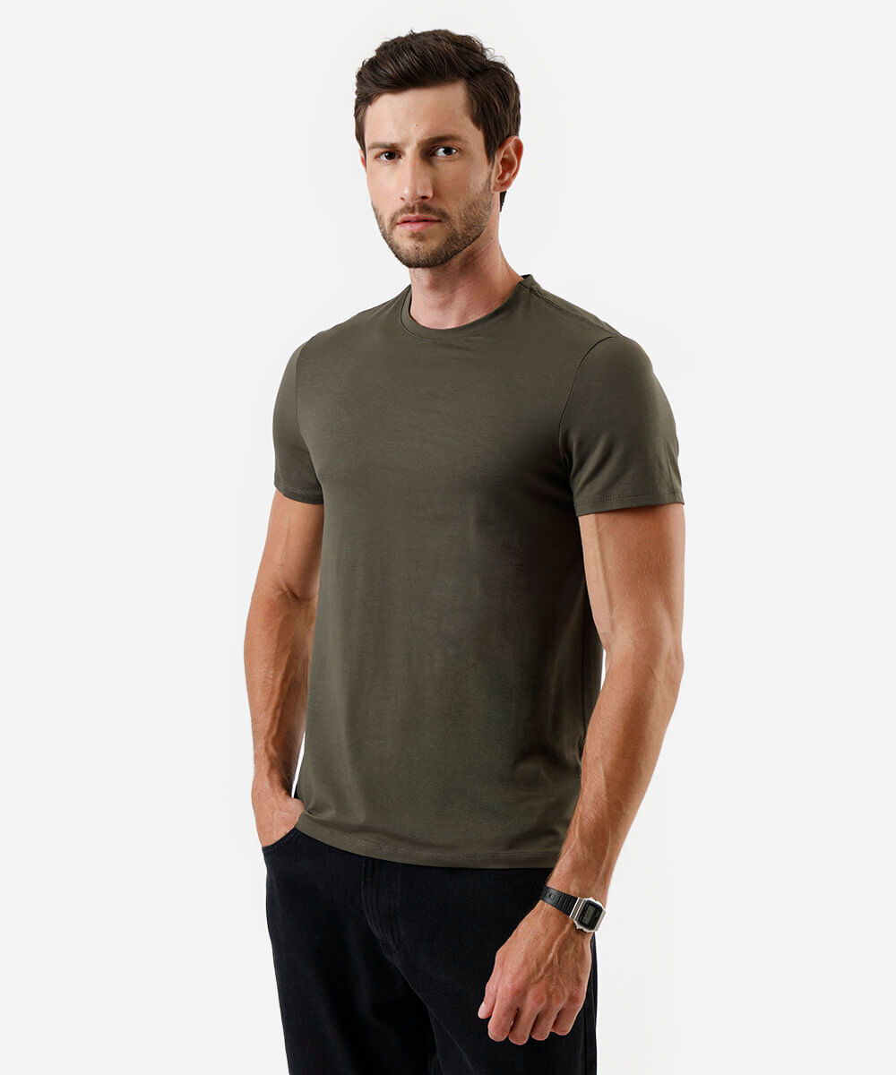 Camiseta em malha de poliéster, com recorte contr... Maisastante na manga e estampa na frontal. Cava raglan. Logo não refletivo. Menos