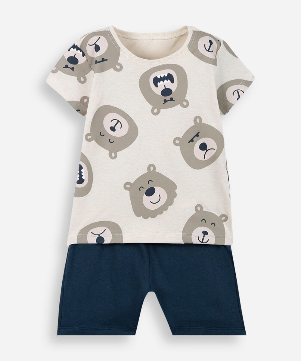 conjunto curto infantil de algodão ursinho bege