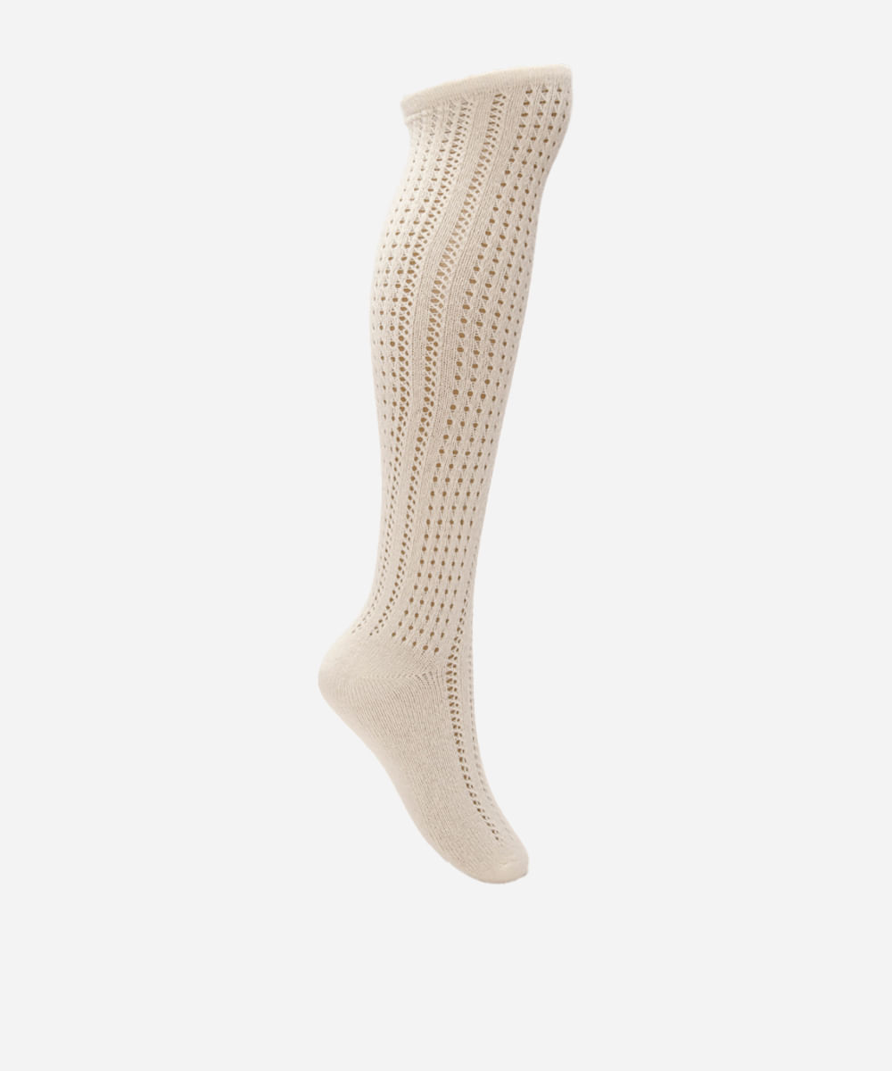 meia feminina de tricot cano longo off white