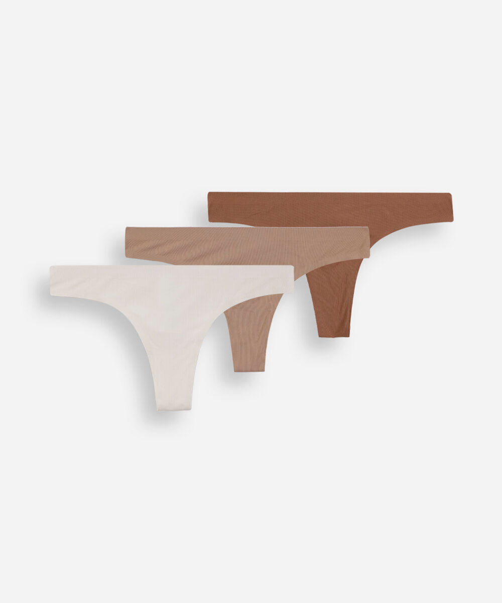 kit de 3 calcinhas fio dental feminino canelada colorido