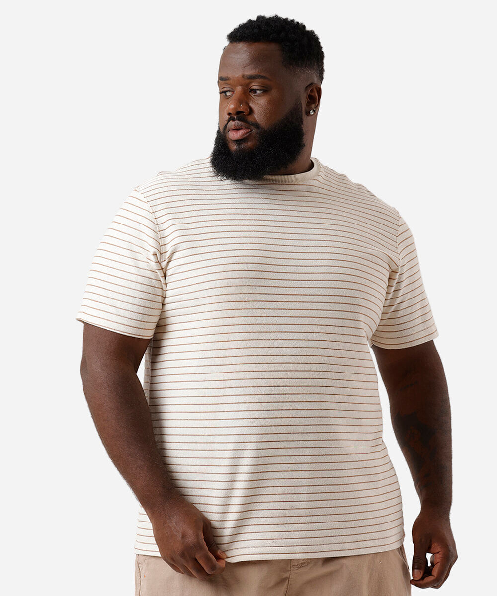 camiseta masculina comfort listrada plus size bege