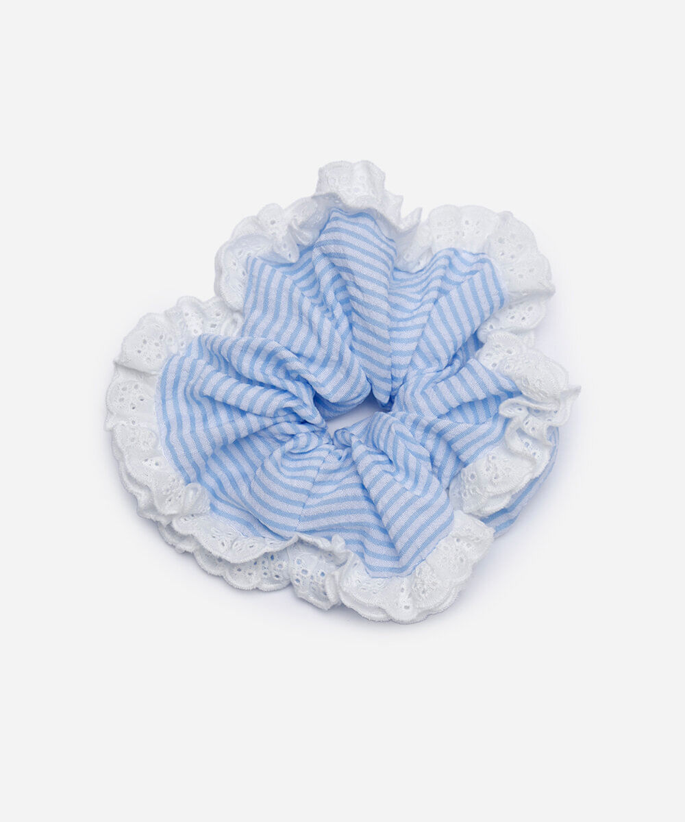 elástico de cabelo srunchie listrado com laise azul