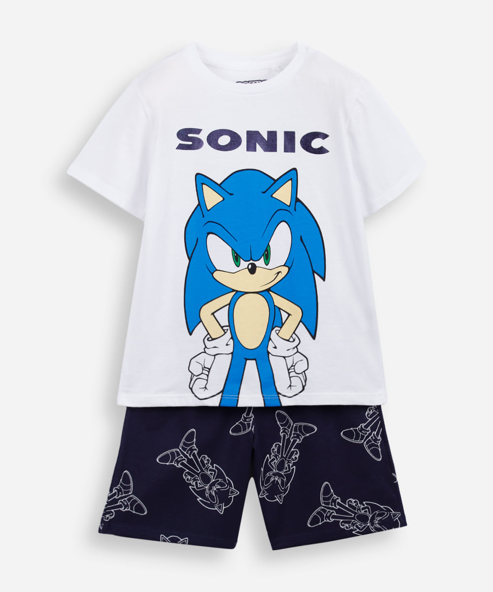 pijama curto infantil de algodão sonic off white