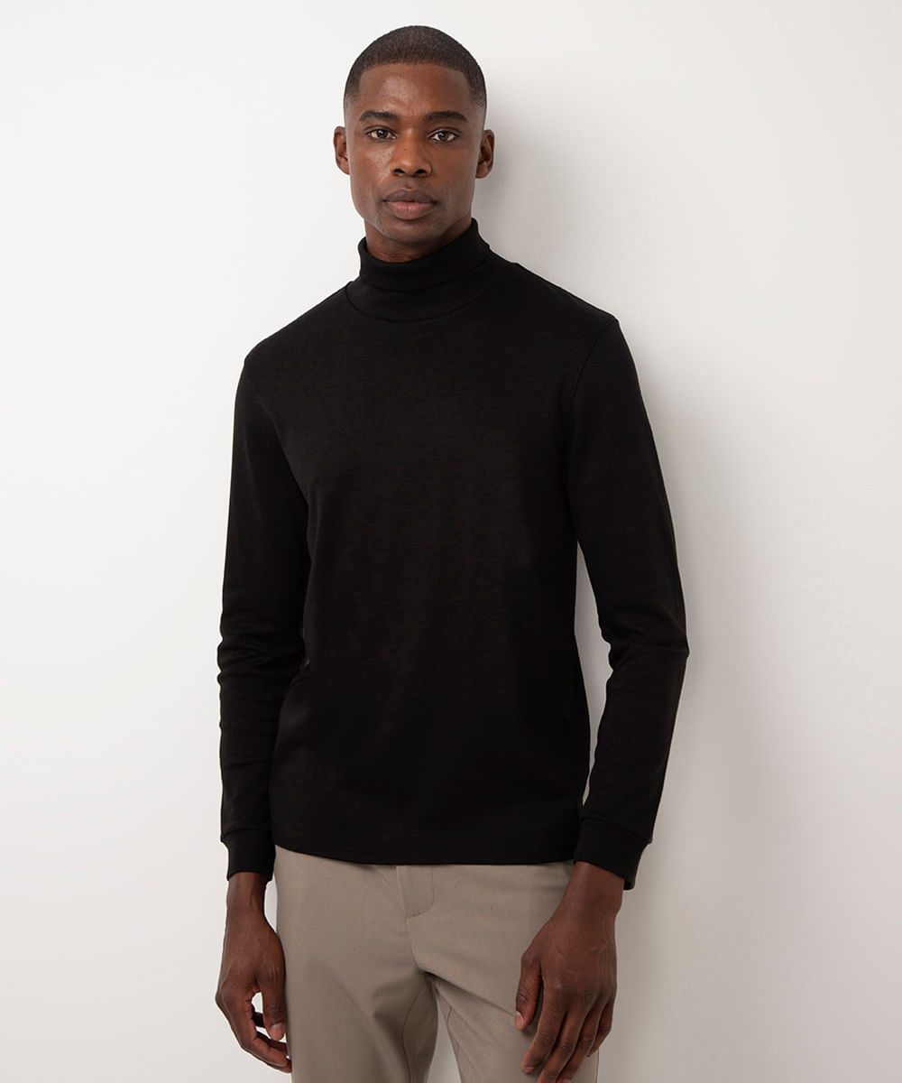 blusa slim manga longa gola alta - preto