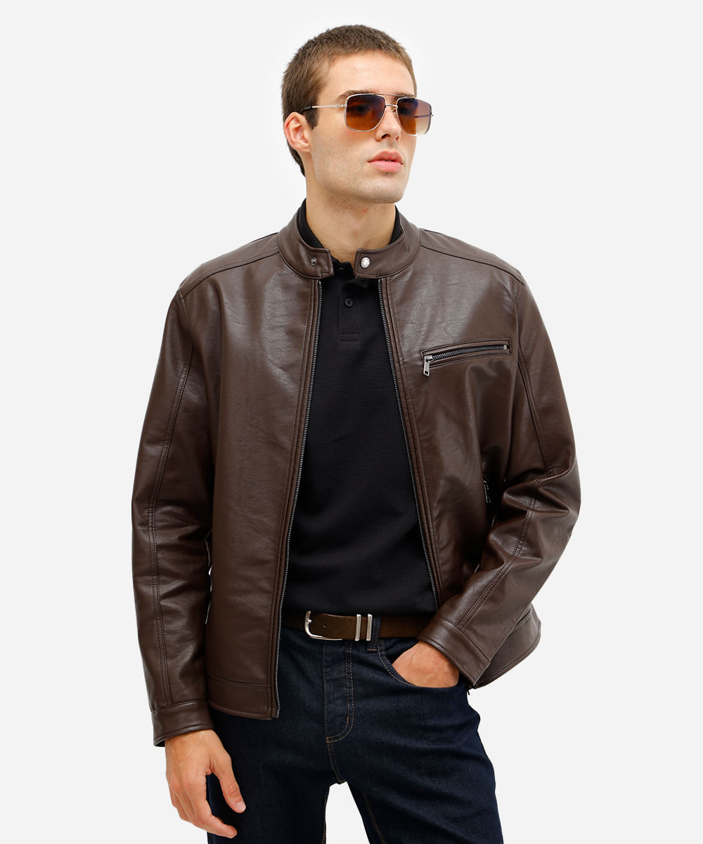 jaqueta masculina de poliuretano marrom