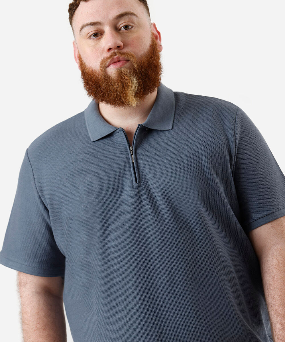 polo masculina com zíper texturizada plus size azul