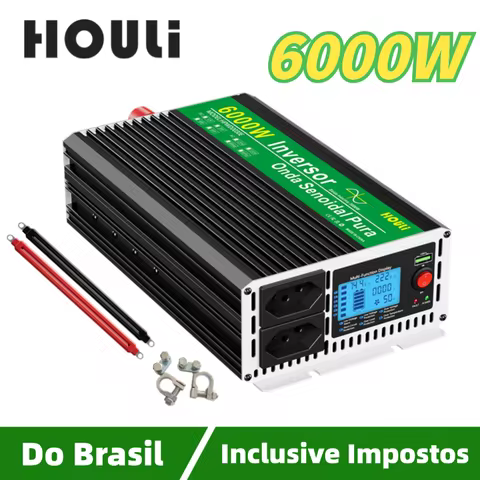 HOULI inversor 12v para 220v senoidal pura 3000W 4000W 5000W 6000W transformador 12v 110v carro USB 60hz conversor do brasil