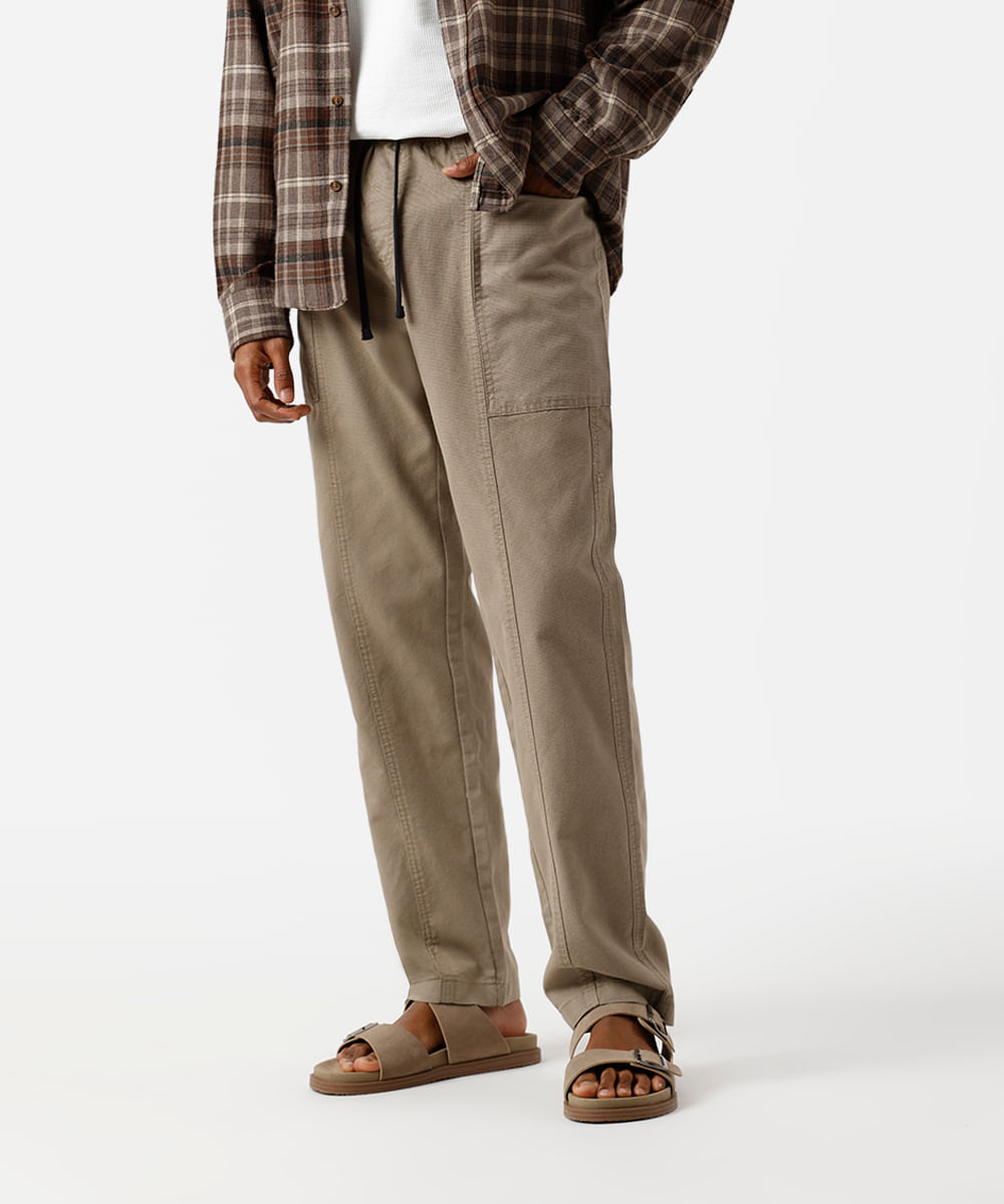 calça jogger masculina de sarja texturizada bege