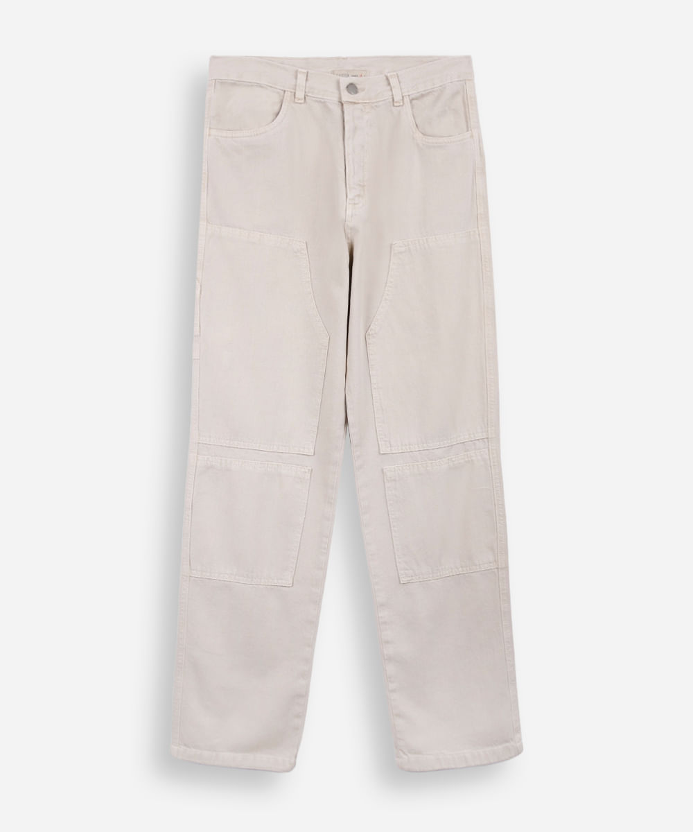 calça reta juvenil de sarja bege