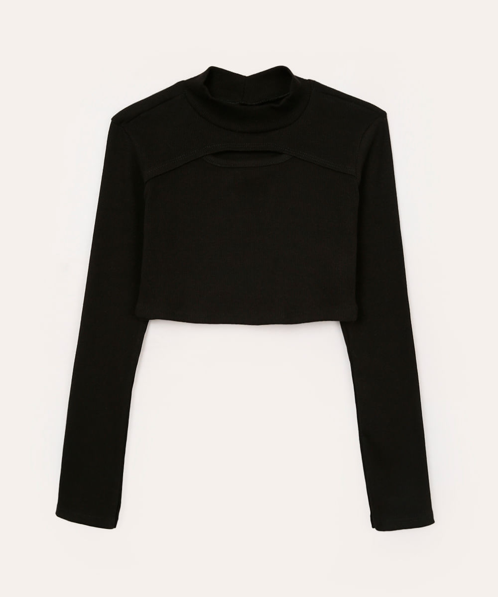 blusa de algodão juvenil cut out preto