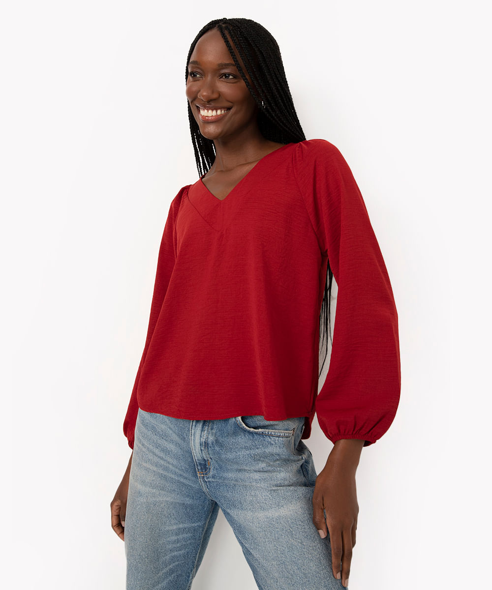 blusa decote v manga raglan vinho