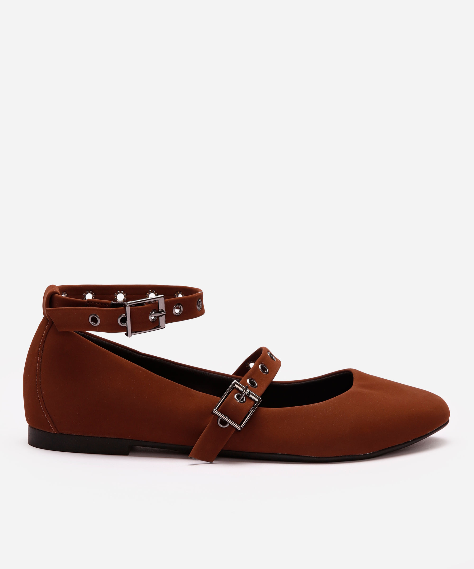 sapatilha com tiras e ilhós marrom