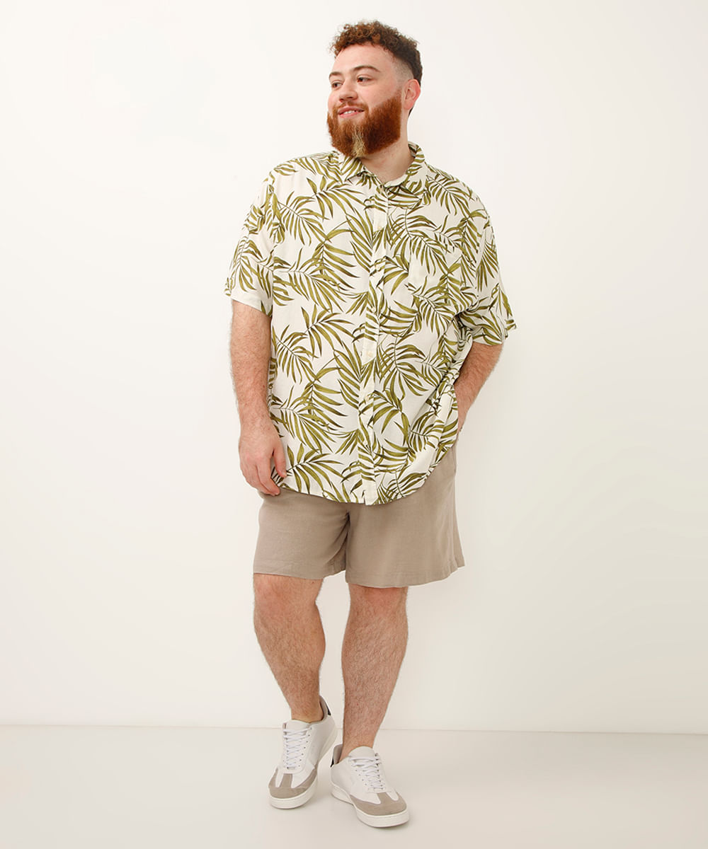 bermuda de linho com bolsos plus size bege