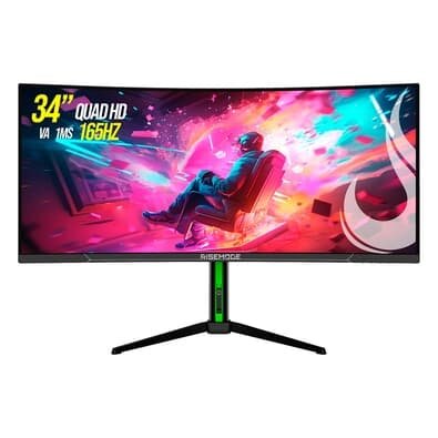 Monitor Gamer Curvo Rise Mode 34", QHD, 165hz, 1ms, VA, Preto, DisplayPort e HDMI, sRGB 110%, Ajuste altura - RM-MOG-34C1652K-B