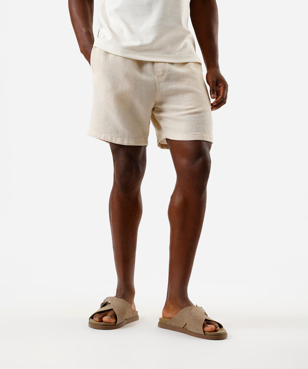 bermuda reta masculina de algodão texturizada off white