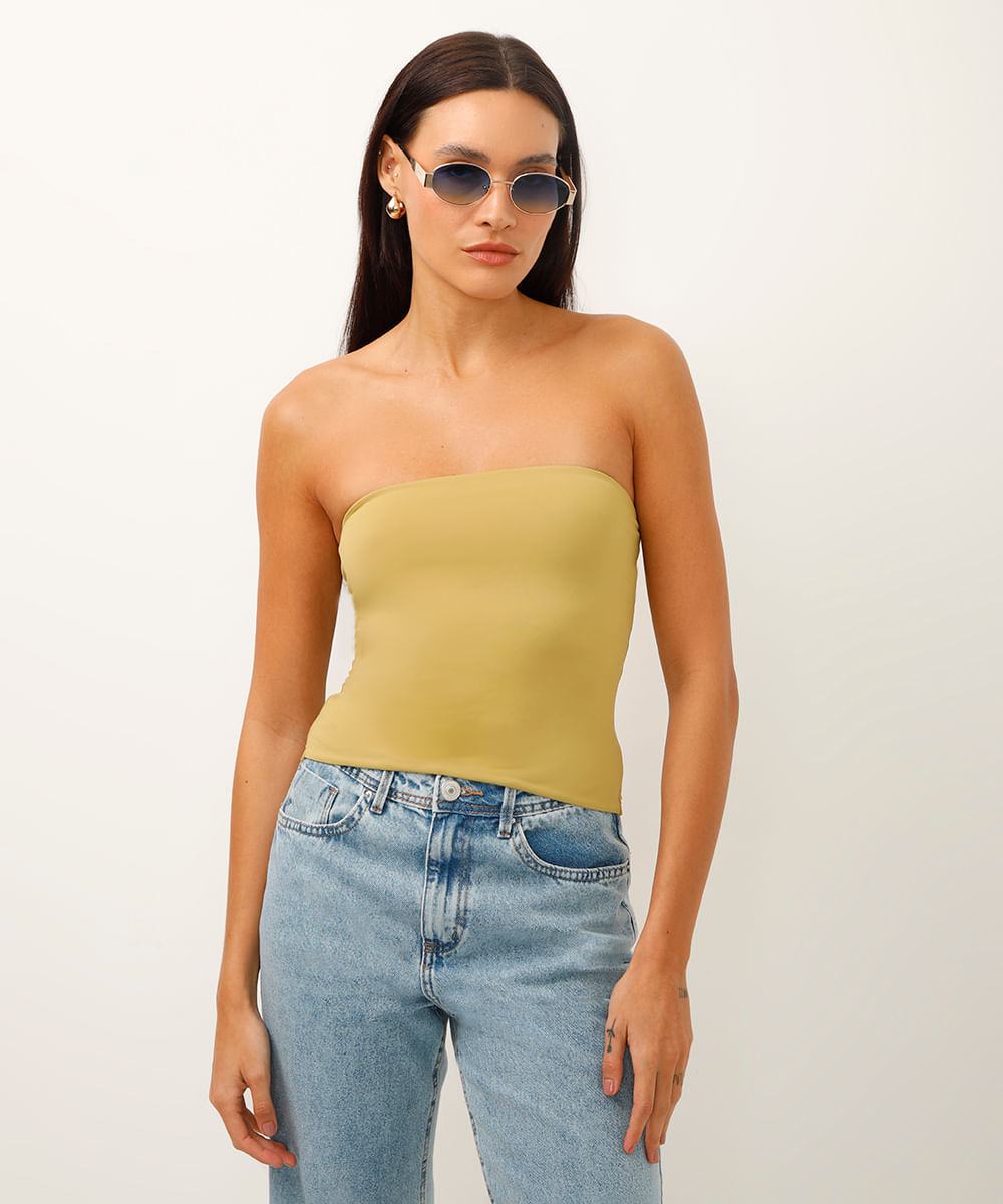 cropped de poliamida sem alça verde