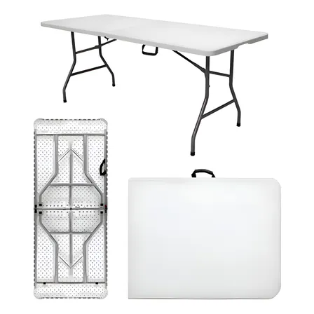 Mesa Dobrável Vira Maleta Com Alça Portátil 1.80m Para Camping Pesca Jardim Área Externa Ou Interna Salão De Festas Gourmet Cor Brancoluvinco