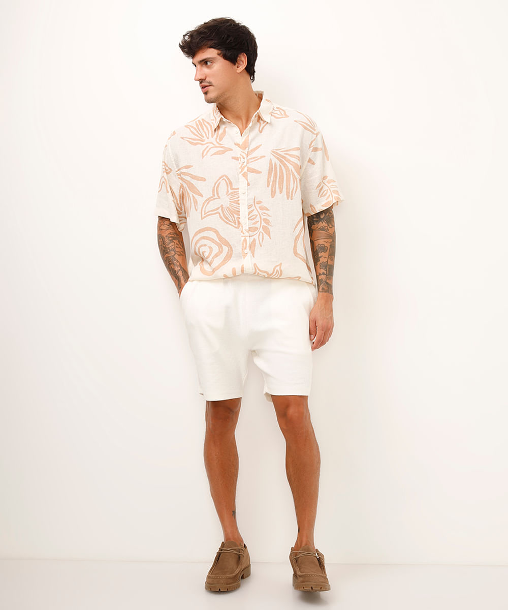 bermuda relaxed de algodão texturizada branca