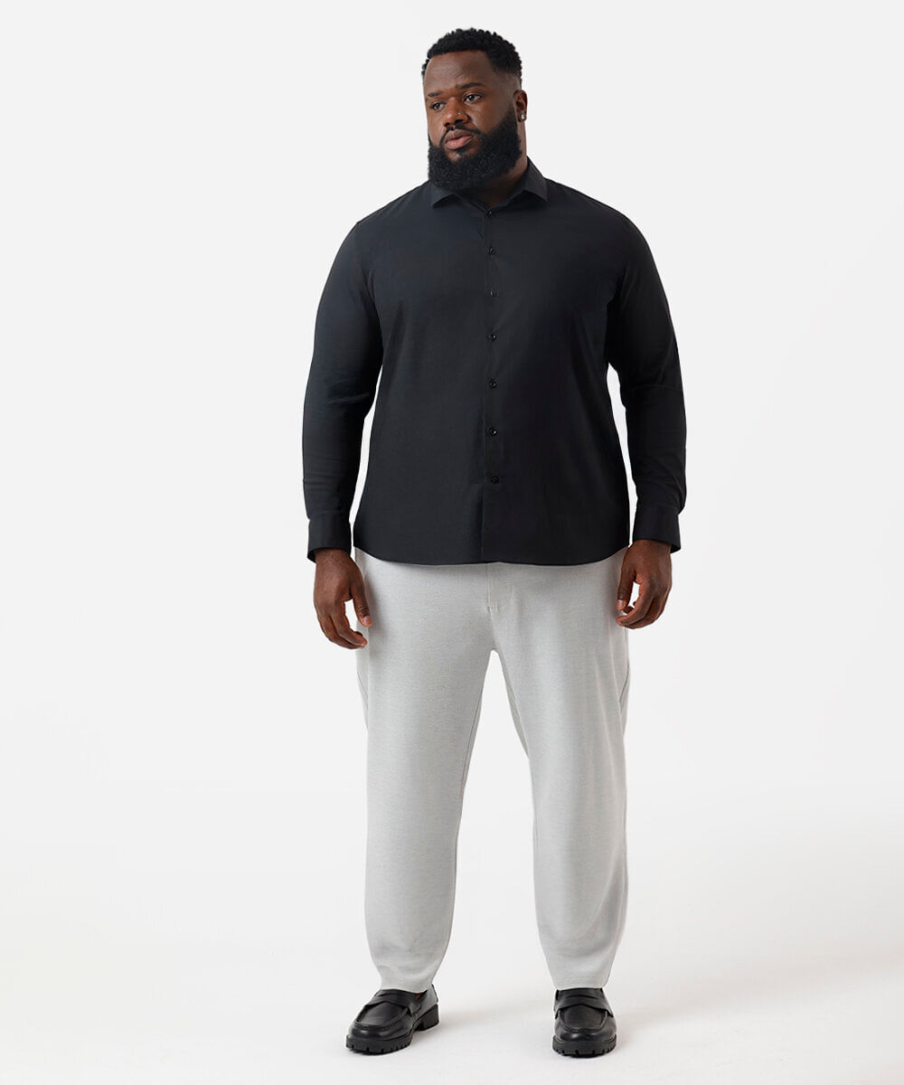 calça social masculina cintura média plus size cinza