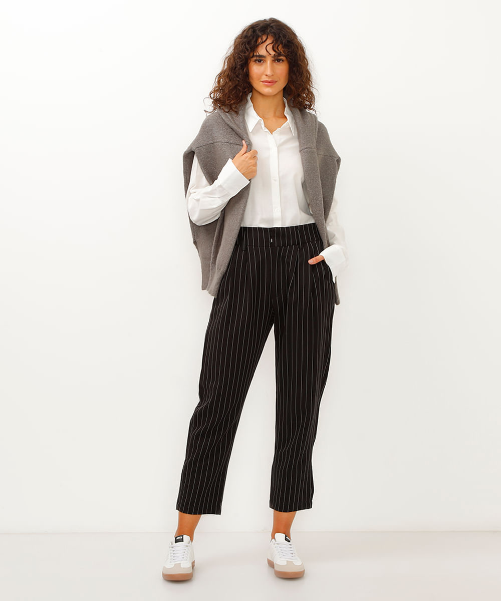 calça de alfaiataria slouchy risca de giz preto