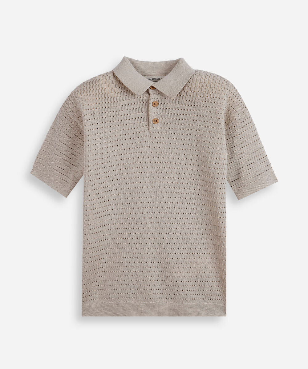 polo infantil de tricot texturizada bege