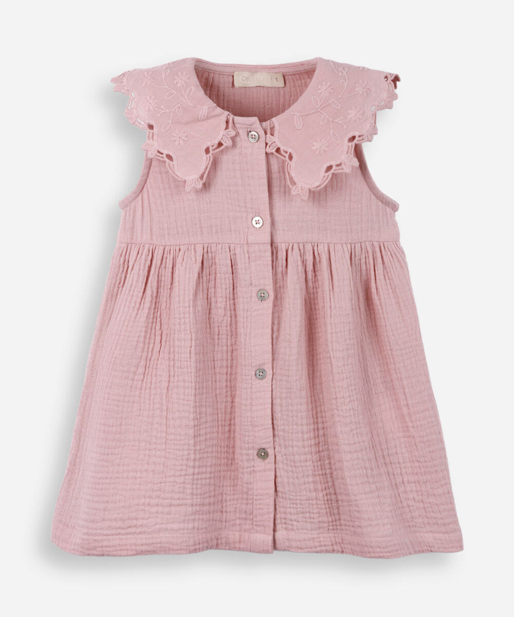 vestido infantil de algodão gola de laise rosa