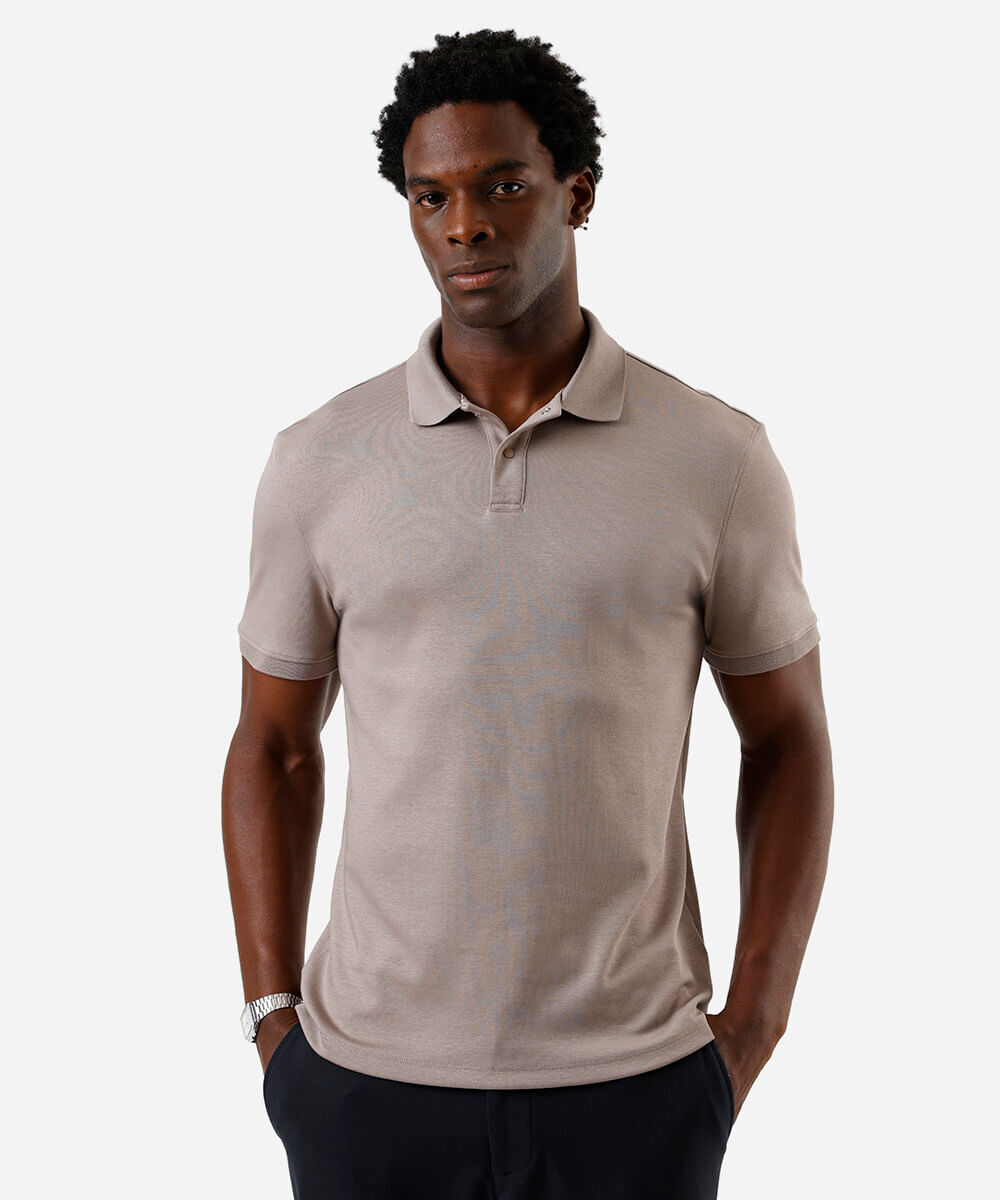polo masculina de algodão peruano manga curta bege