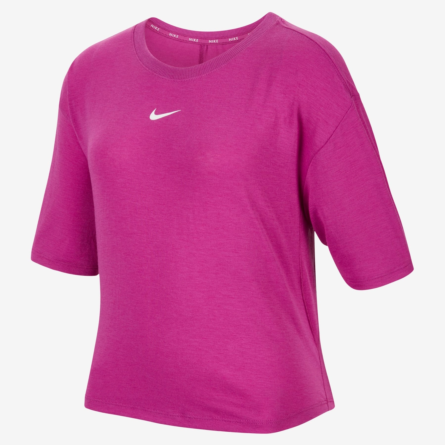 Não importa se você está indo para o treino ou ... Maisrelaxando com os amigos, esta blusa Nike One Relaxed está pronta para qualquer situação do seu dia. O tecido jersey levemente texturizado e incrivelmente leve seca rapidamente (adeus, suor!) e envolve você com conforto, não importa a atividade. Além disso, um ajuste solto e confortável ajuda a manter você coberto sem parecer muito longo ou muito grande.Nike One RelaxedQueremos que a Nike One seja perfeita para todos. Procurando por algo mais justo? Confira nossas camisetas Nike One Fitted. Ou experimente uma camiseta Nike One Classic para um ajuste mais fácil e elegante, disponível em vários comprimentos para atender às suas necessidades.Adeus, Suor! Tecnologia Nike Dri-FIT absorve o suor da sua pele para evaporação mais rápida, ajudando a mantê-lo seco e confortável.Mais Benefícios Painel de tecido sob o braço acrescenta mais espaço para se movimentar.Uma bainha levemente curvada mantém seu corpo coberto durante os movimentos.< p>Detalhes do Produto81% poliéster, 13% algodão e 6% elastanoLogo Swoosh transferido à quente< li>Lavável à máquinaImportado Menos