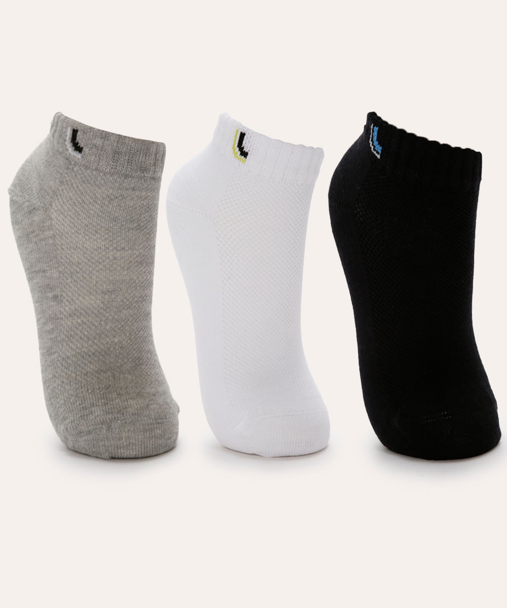 kit de 3 meias soquete infantil lupo colorido
