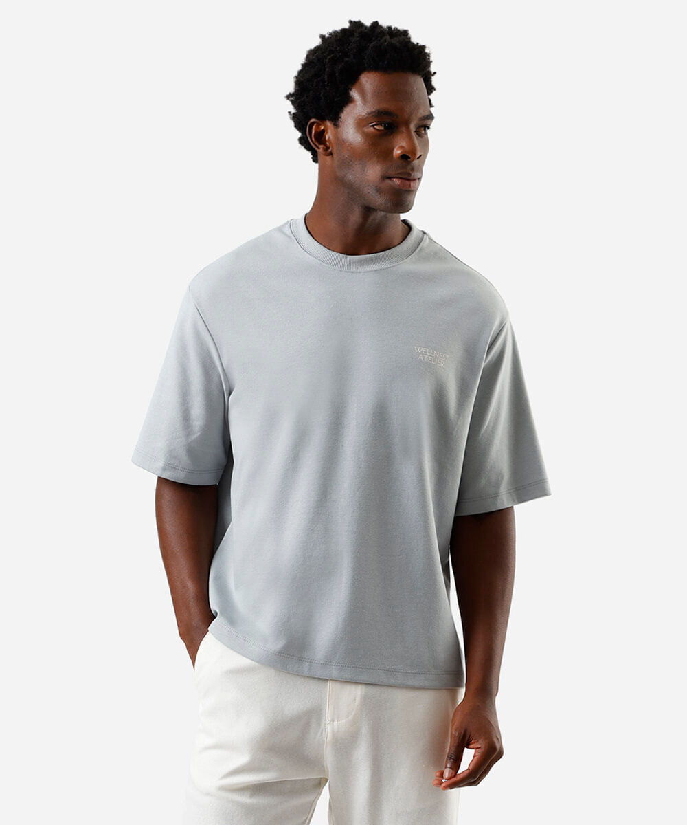 camiseta box fit masculina com algodão estampada azul