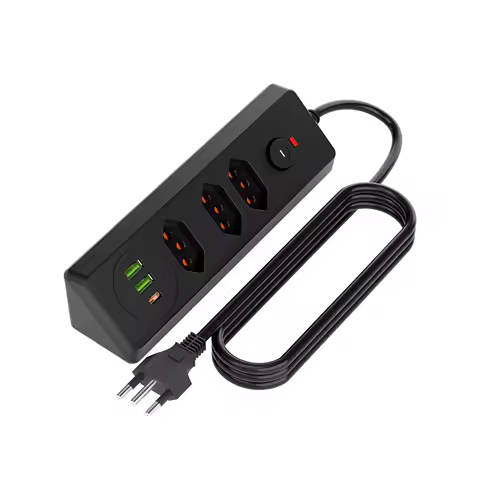 Tomada Múltipla Padrão Brasileiro 3 Tomadas + 2USB + Type-C, Extensão Elétrica, Filtro de Linha, Extensão Tomada, Coibeu