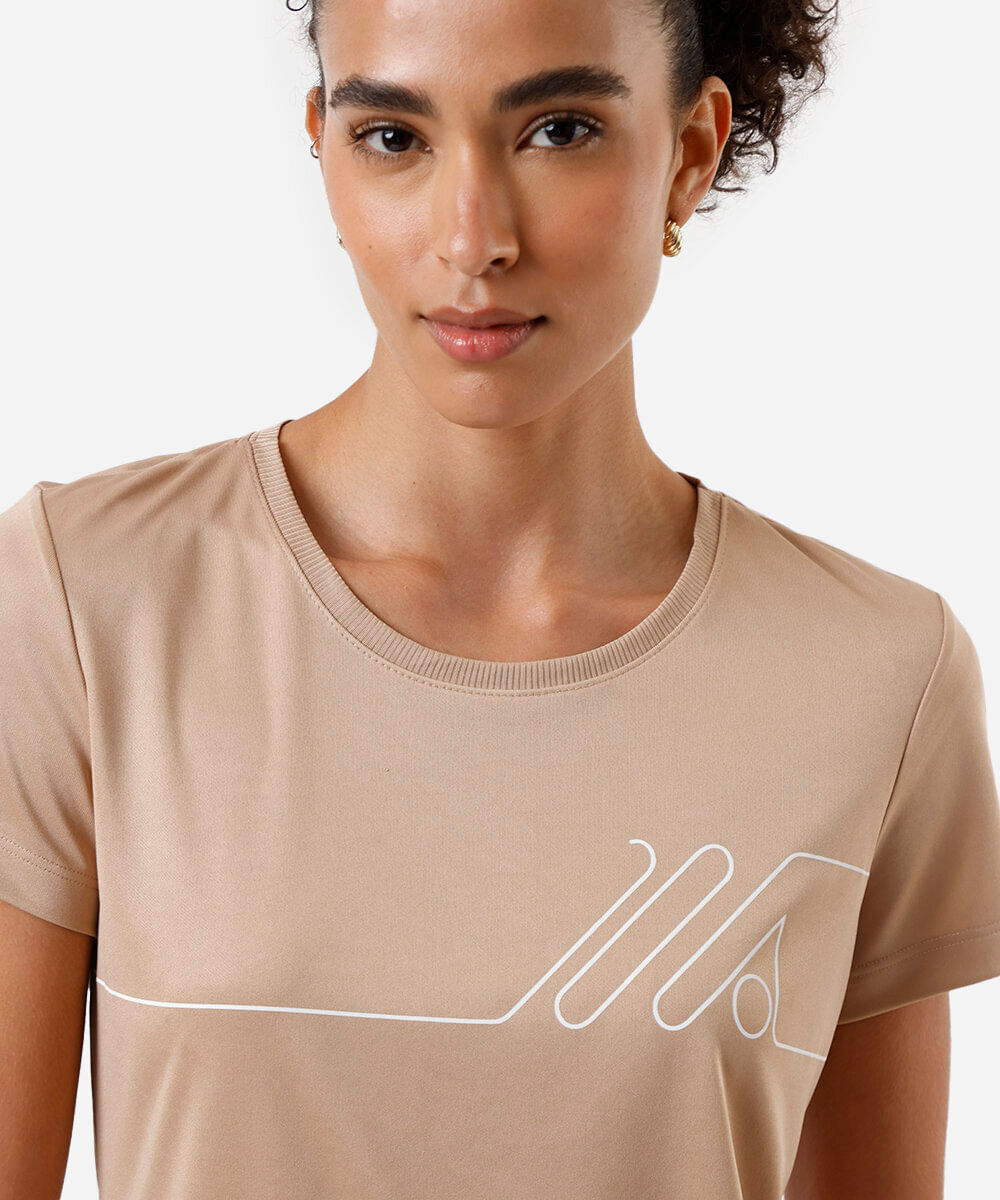 camiseta feminina manga curta esportiva ace bege