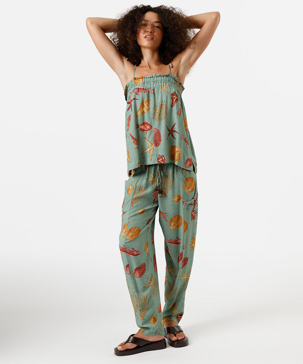 calça jogger feminina de viscose estampada verde