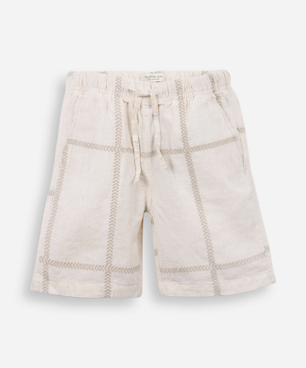 bermuda infantil de algodão com bordados bege