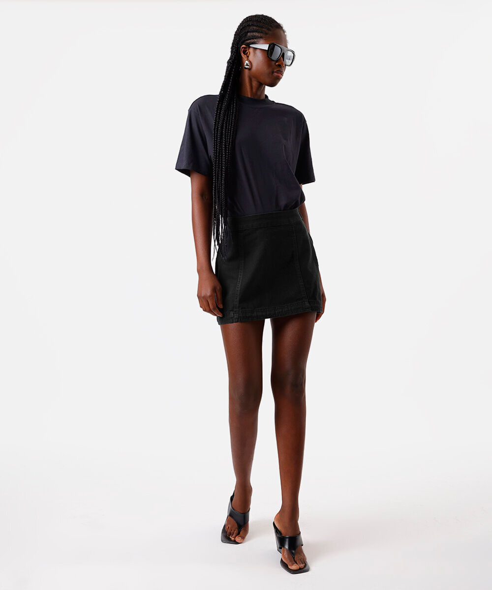 minissaia feminina de sarja com recortes preta