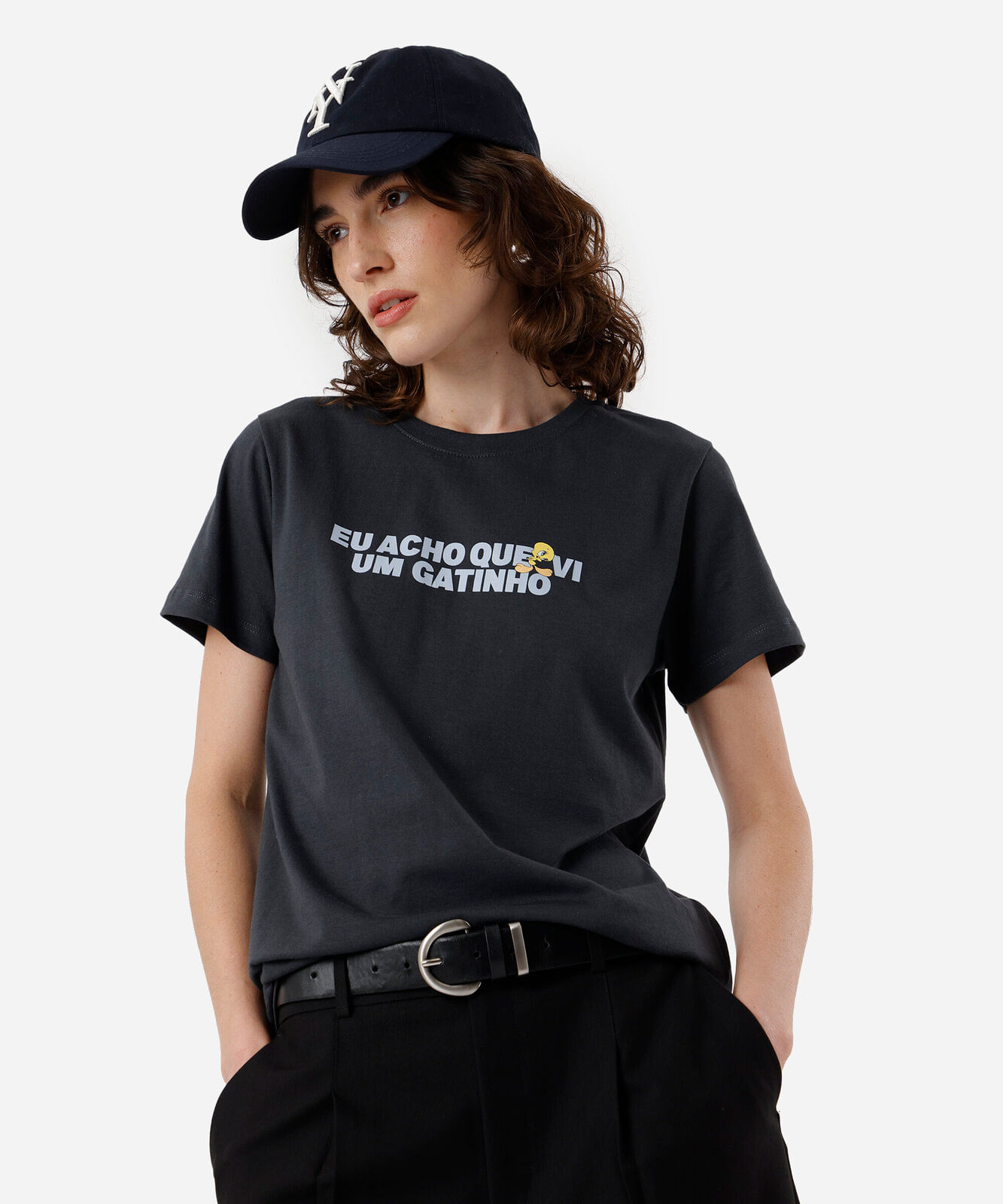 camiseta feminina de algodão piu piu cinza