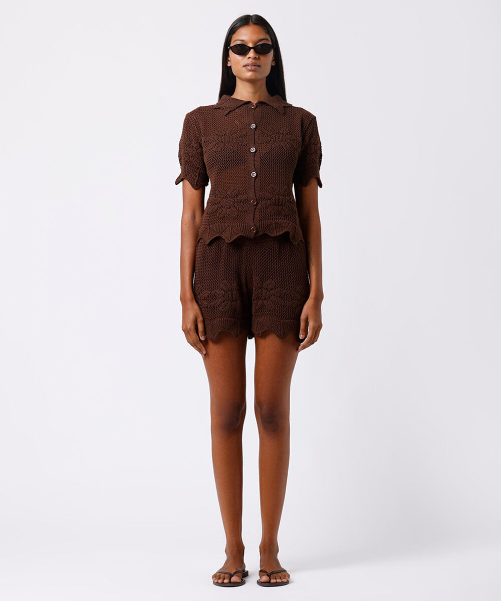 short de tricot floral mindset marrom