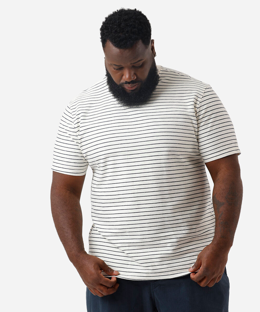 camiseta masculina comfort listrada plus size azul