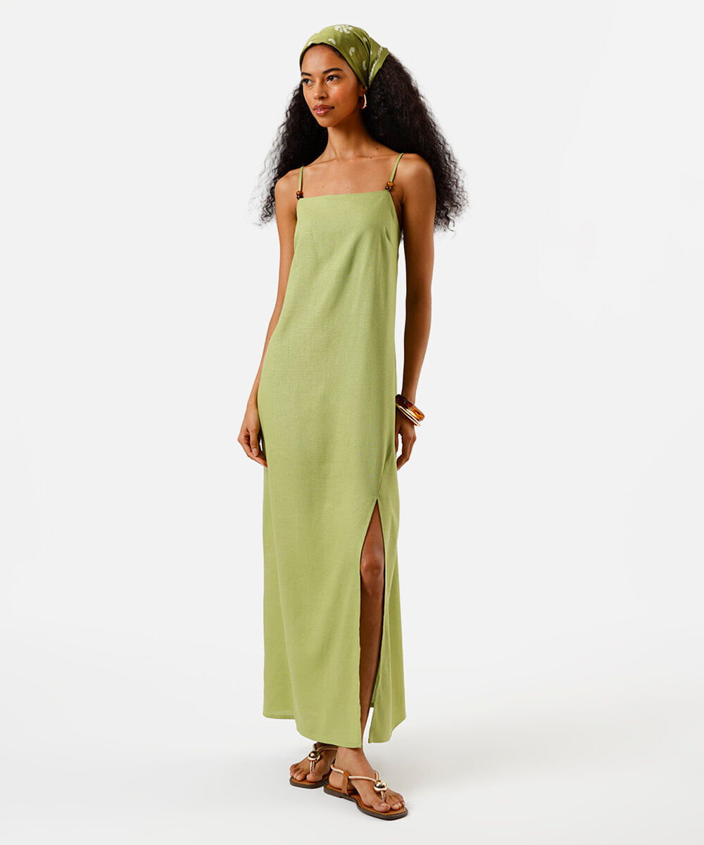 vestido midi feminino com linho verde