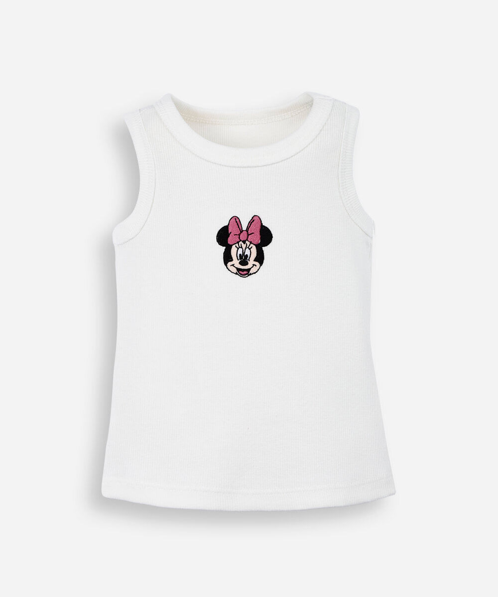 regata infantil de algodão bordada minnie off white