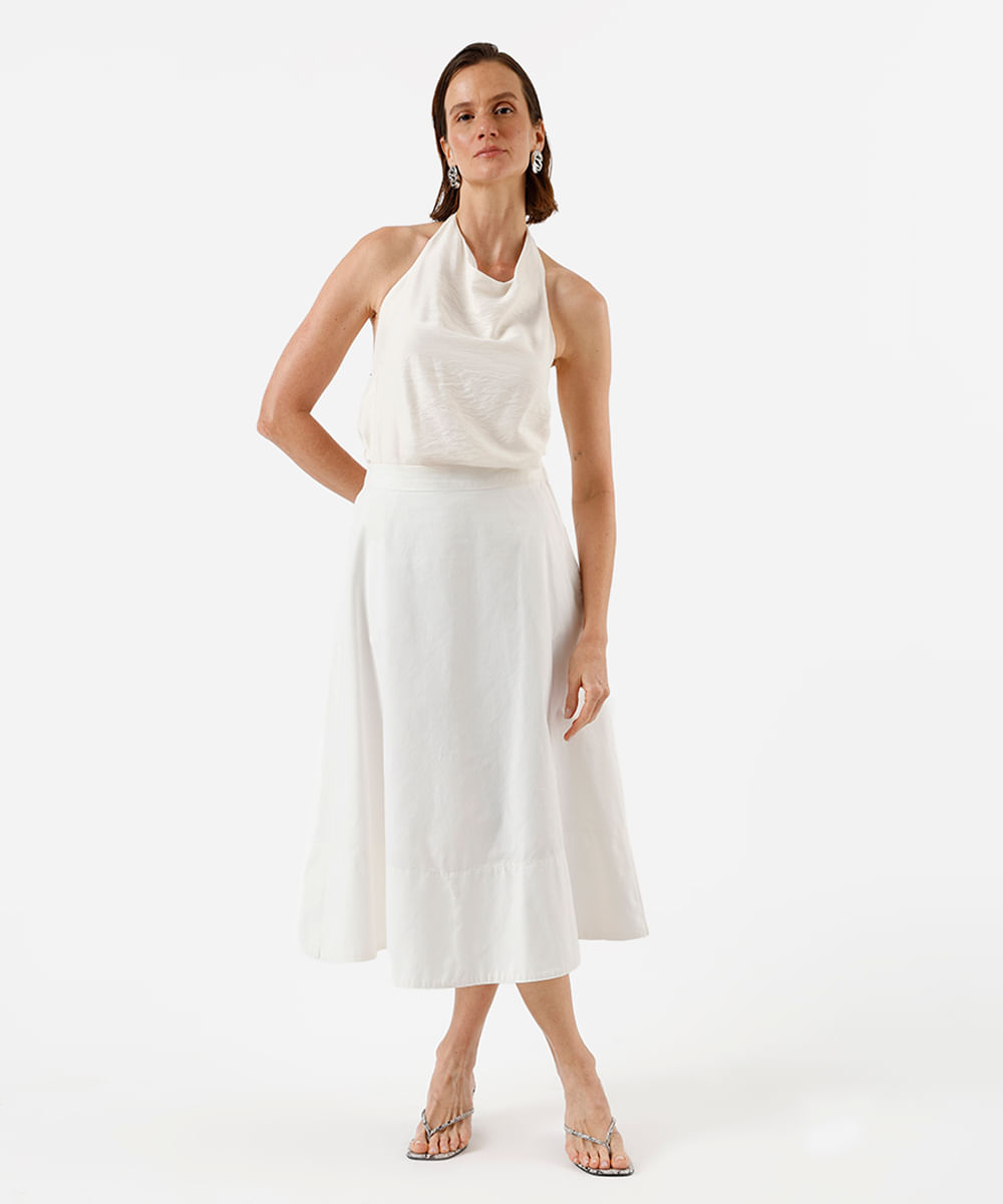 saia midi feminina de sarja cintura alta off white