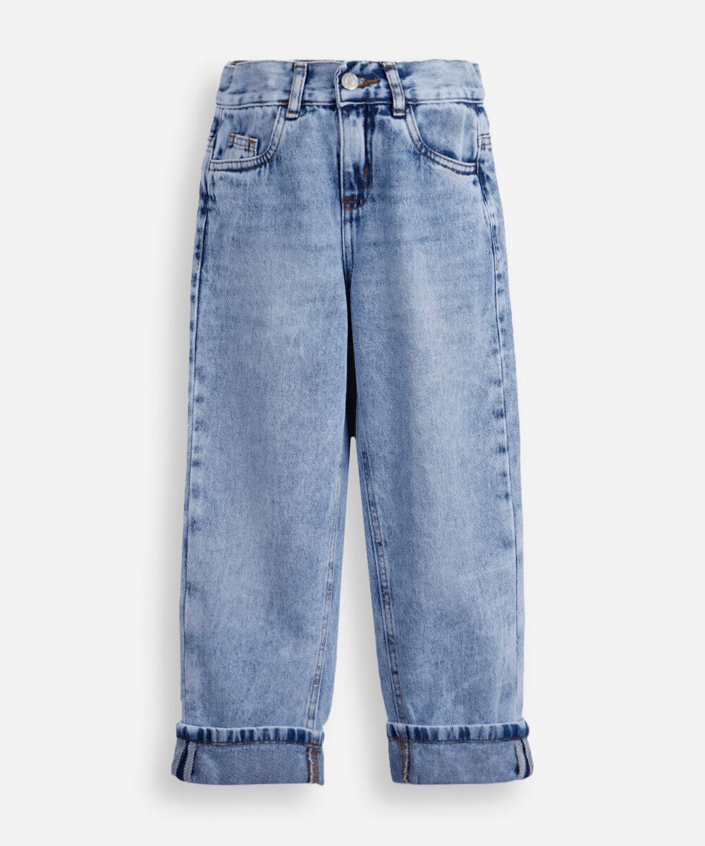 calça infantil jeans com barra dobrada azul