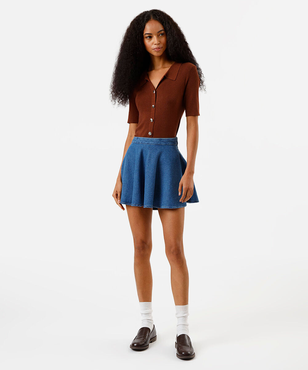 saia curta jeans godê azul