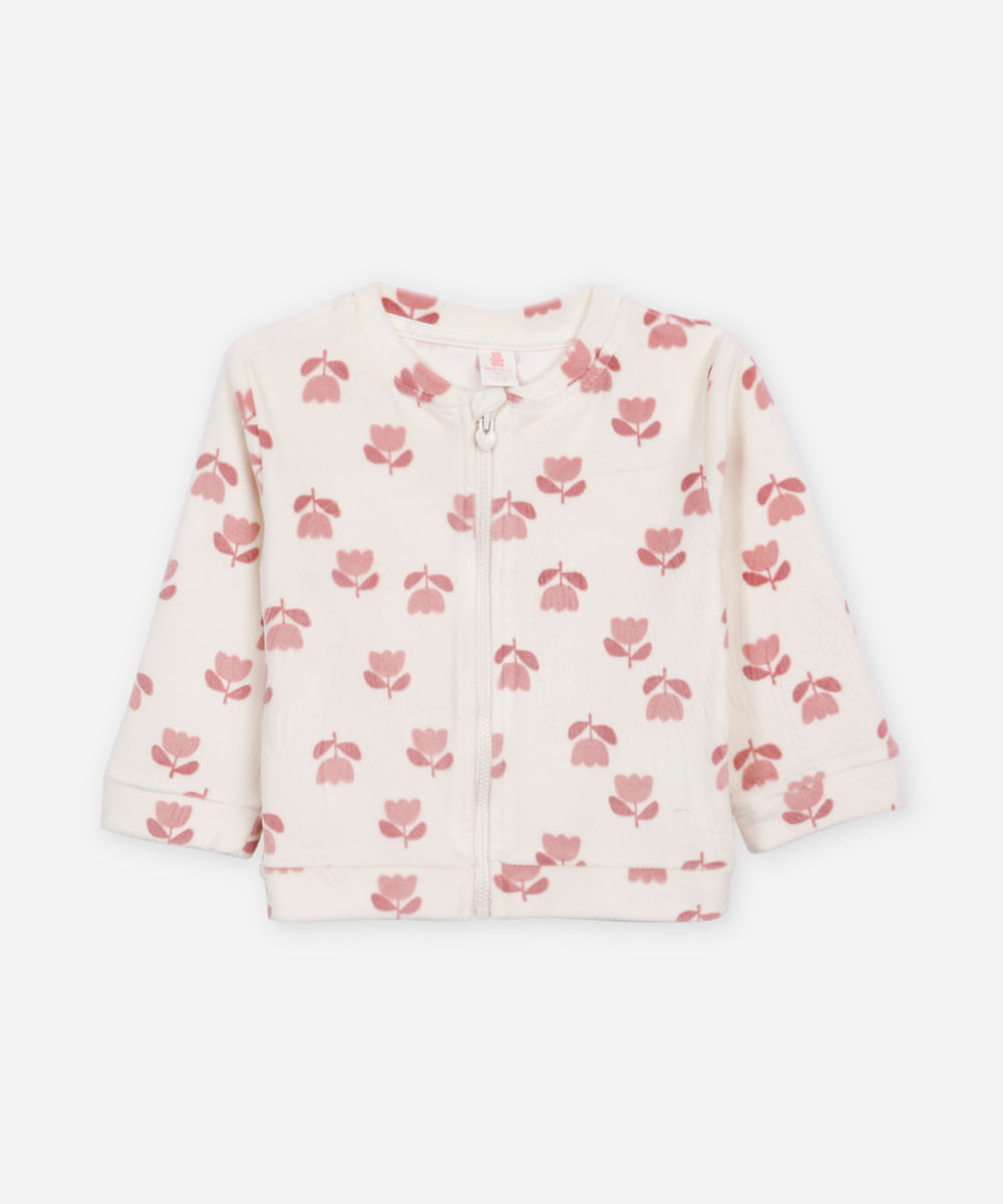 jaqueta de plush infantil floral off white