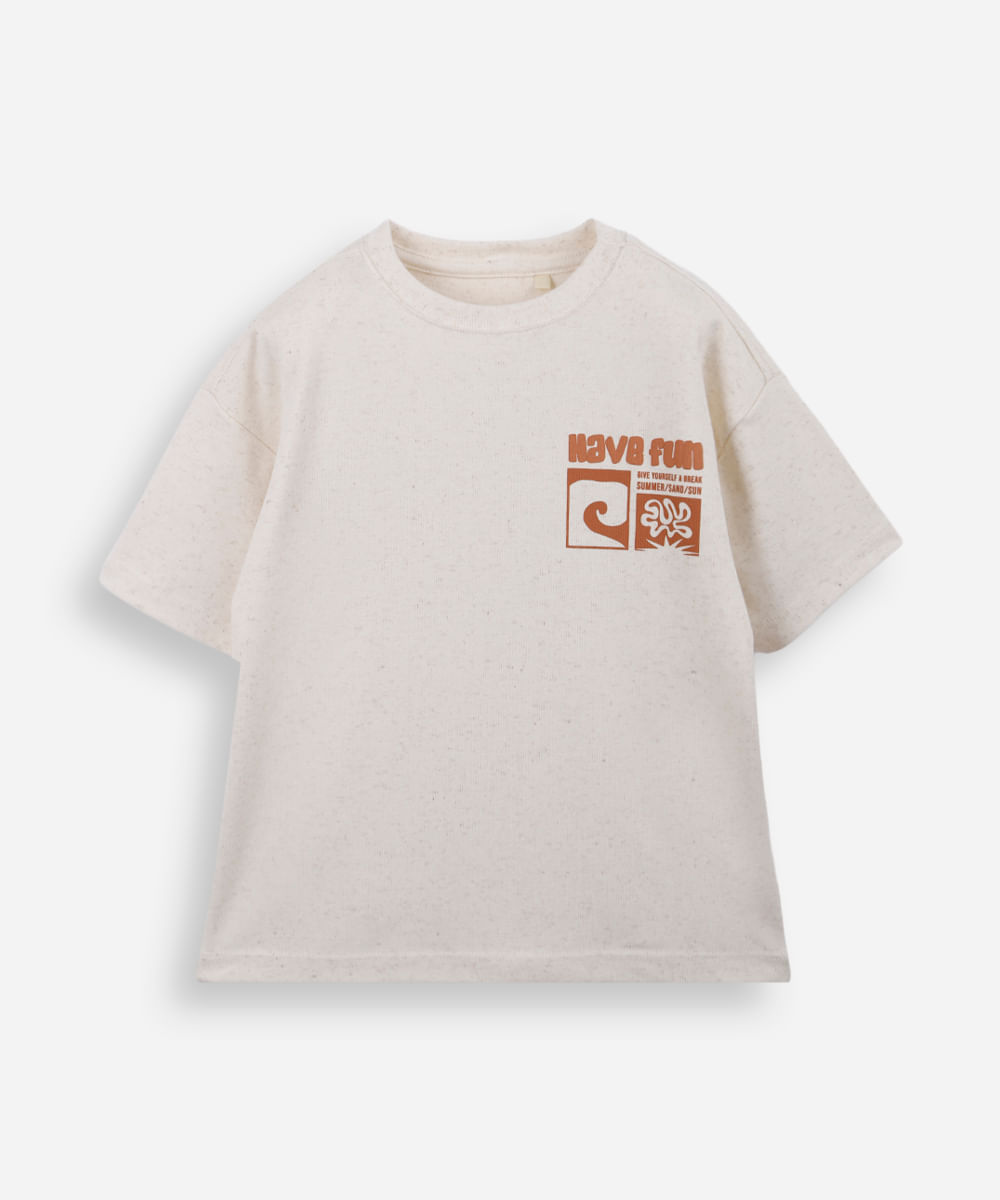 camiseta infantil com linho estampada bege