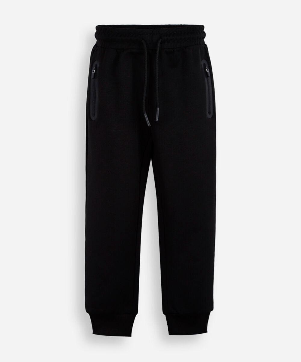 calça jogger infantil de moletom com bolsos preta